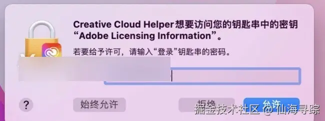 Creative Cloud Helper想要访问您的钥匙串中的密钥“Adobe Licensing Information”。