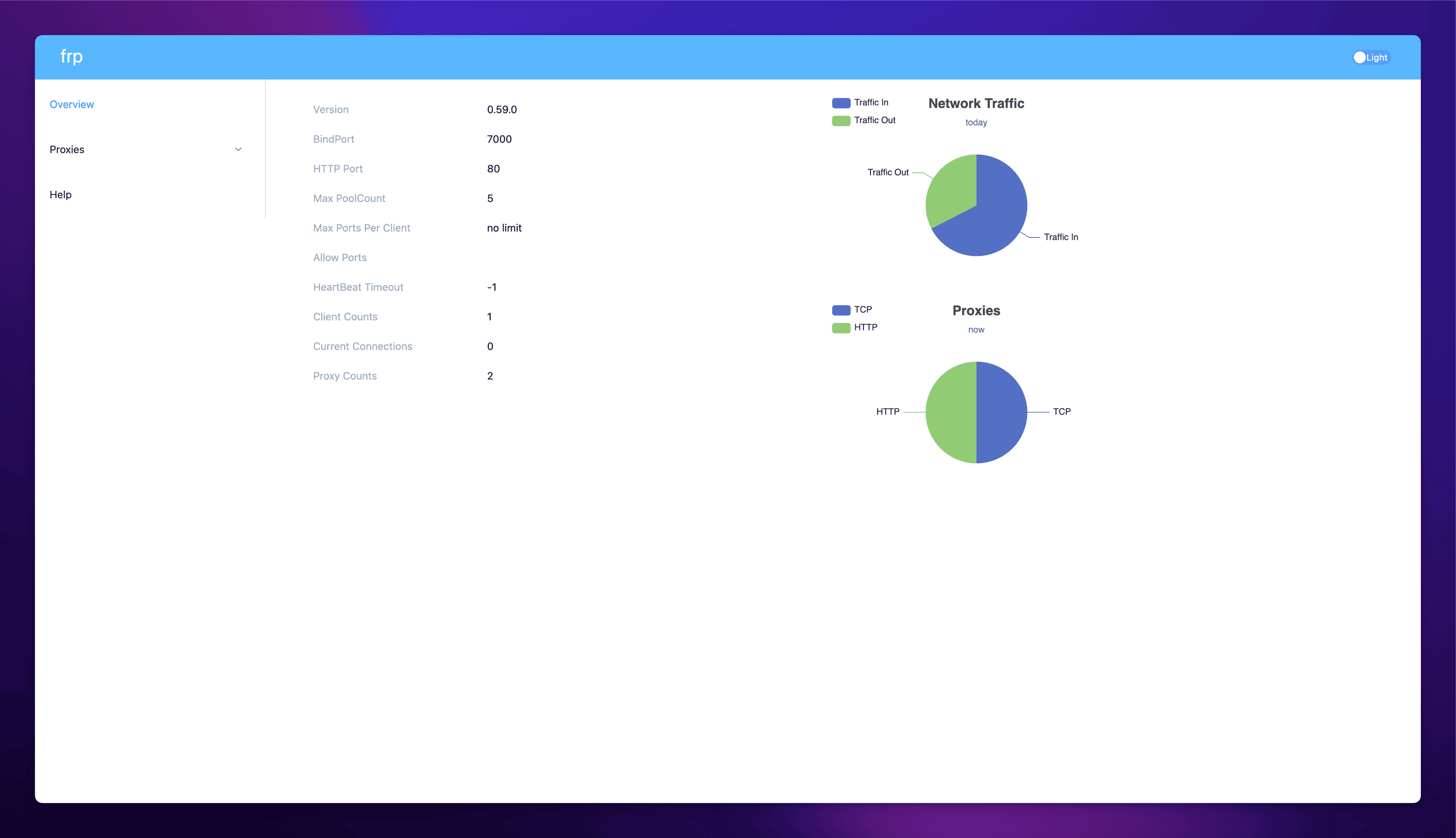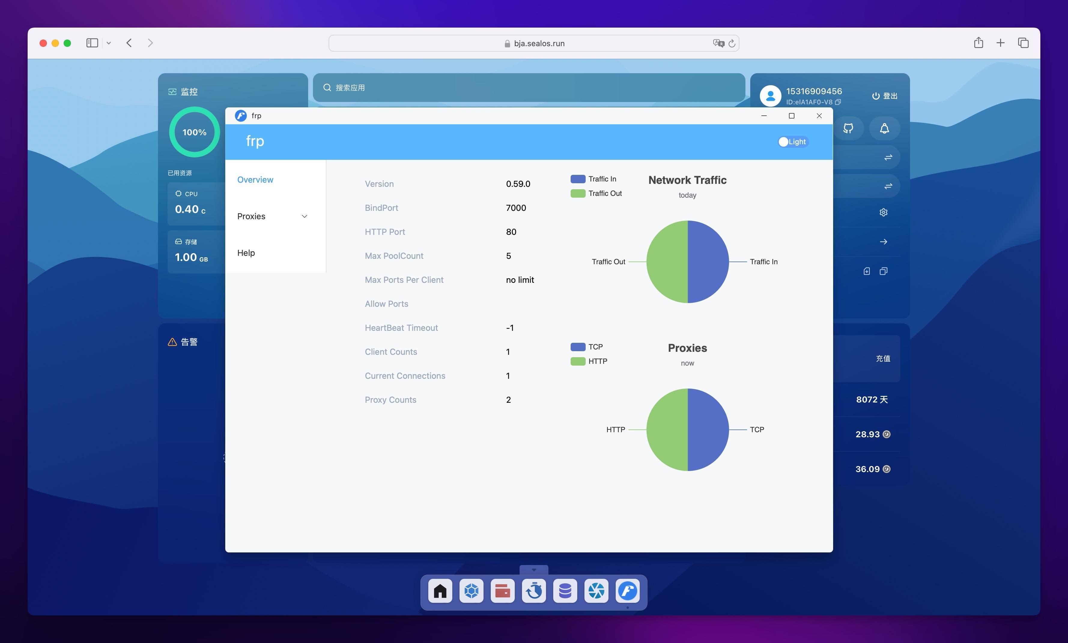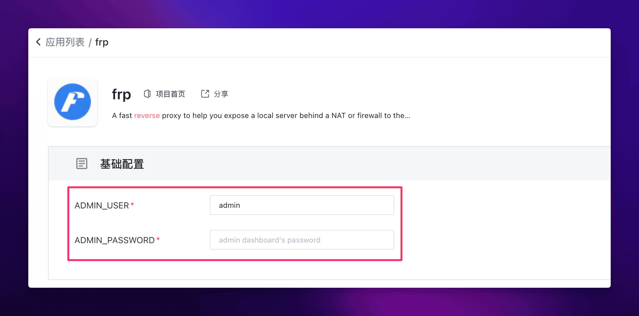 直接点击这个图标就可以打开 frp 的管理界面。输入之前部署时设置的用户名和密码就可以登录了。