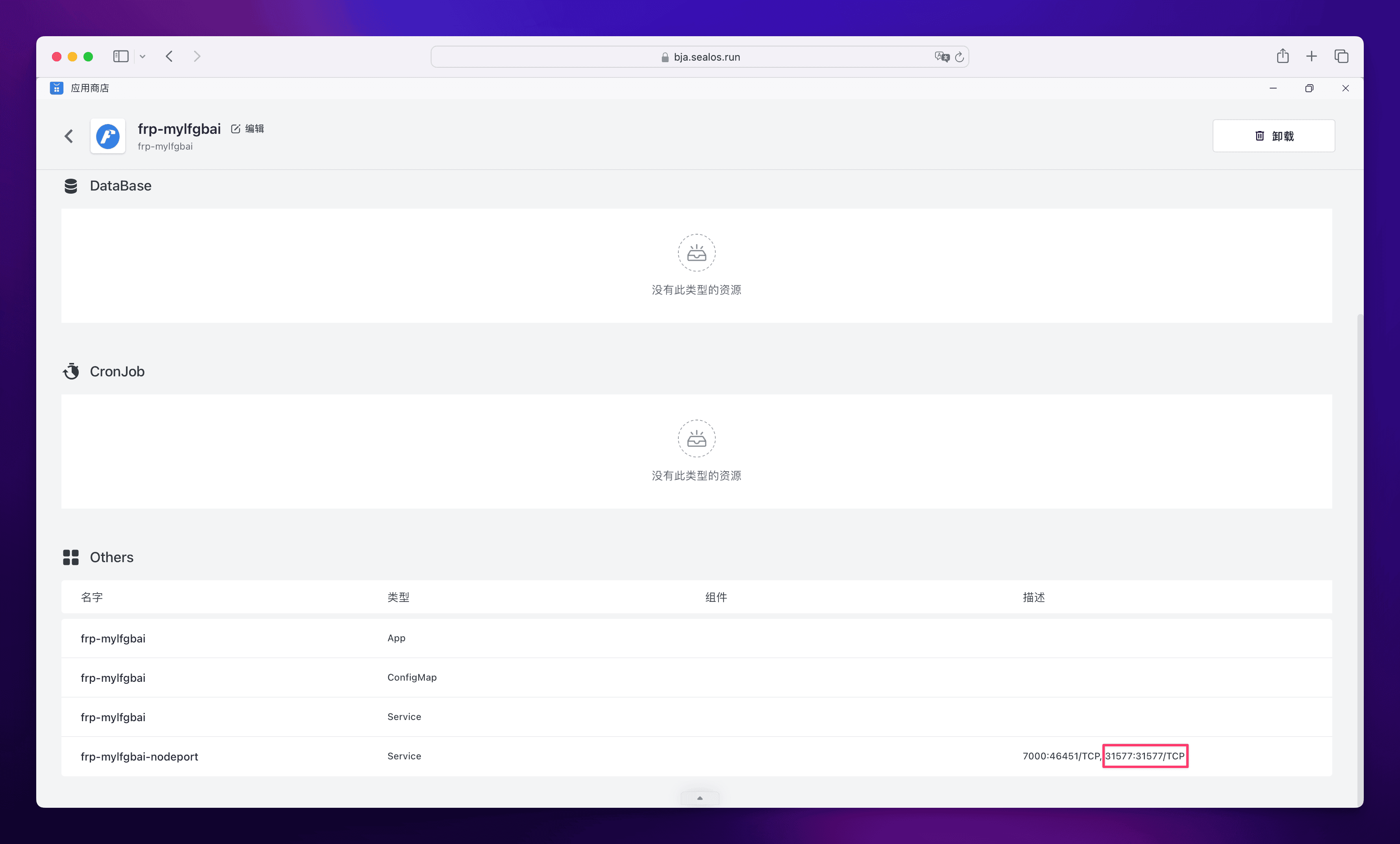 然后将鼠标拉到最下面,除了 7000 端口之外,还暴露了一个 TCP 端口,将这个端口的值作为上述 frpc 配置文件中 remotePort 的值即可。
