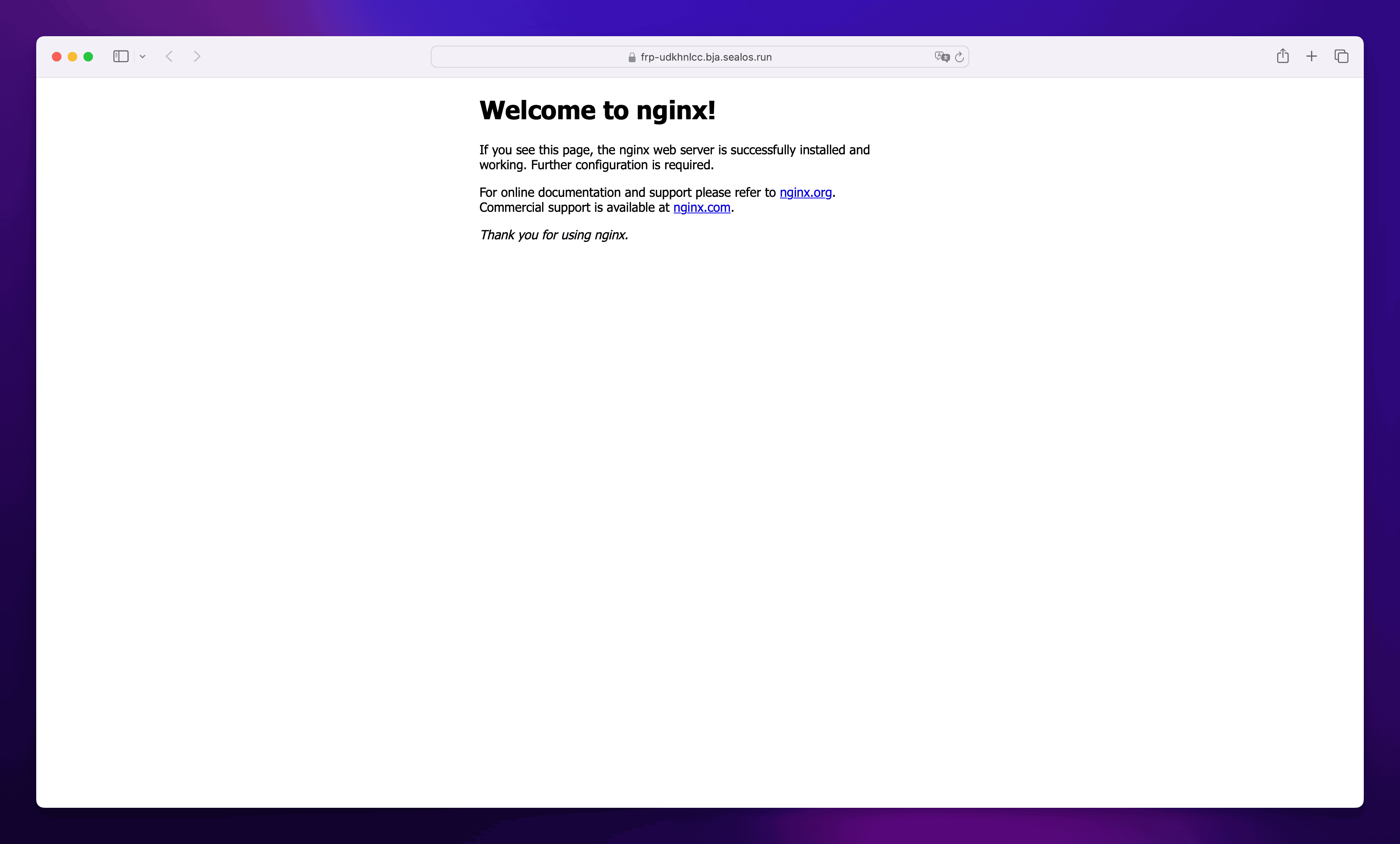 现在让我们回到 frp 服务详情页面,点击 80 端口对应的外网地址就能打访问地机器的 Web 服务了。