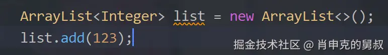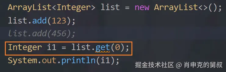 就想这个集合直接add(123)为什么不会报错呢?就是因为123 到 Integer实现了自动装箱的过程。把123是当成Integer对象给到的集合,