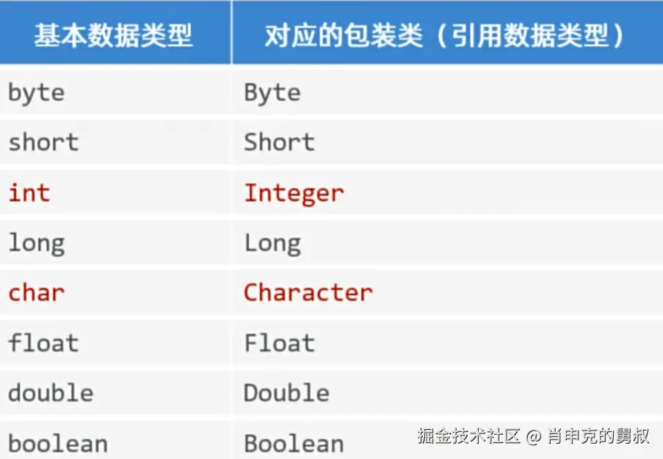 八种基本数据类型除了int ->Integer 和 char -> Character,其余的包装类都是首字母大小即可。