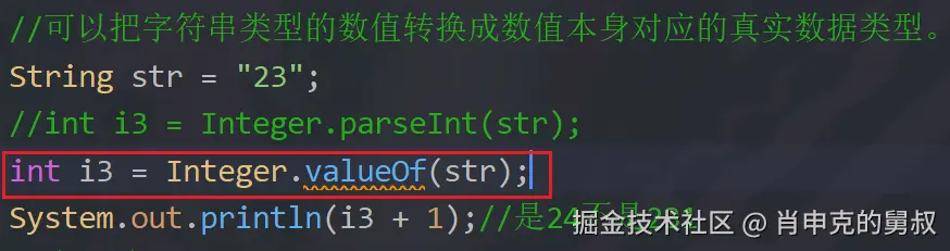 但更方便的是int i2 = Integer.ValueOf(str);就可以不用调parseInt: