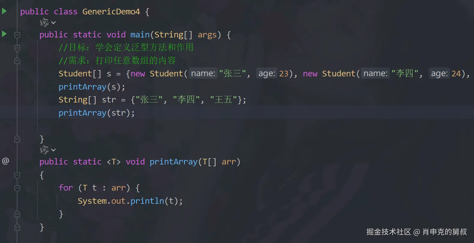 如下,String类型和Student类型都可以传给printArray方法