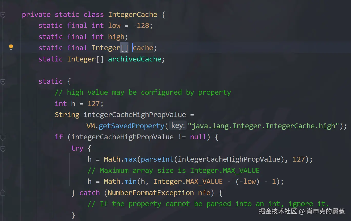 这个valueOf已经提前在这个数组cache(缓存池)中 封装好了【-128~127】的所有对象,不需要你自己再去new新的,占用内存。