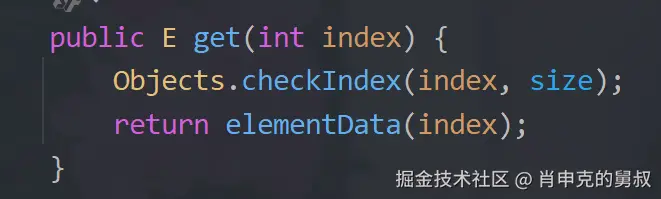 但下面这种不是泛型方法!!不是它自己定义的,是外面所在的泛型类定义的,它只是在用别人的类型变量 如ArrayList中的get方法::