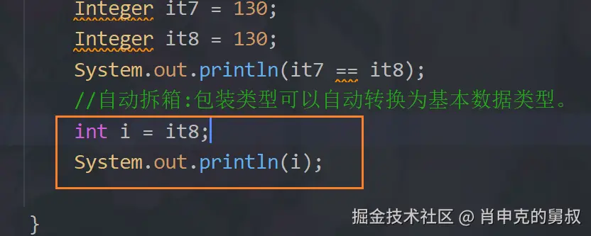 自动拆箱:包装类型可以自动转换为基本数据类型。