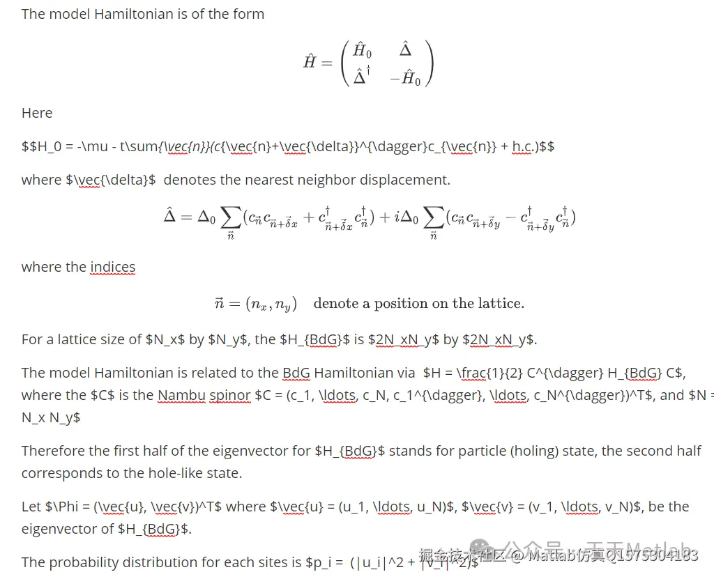 创建哈密顿量矩阵: 代码通过循环遍历所有格点,根据跃迁项和超导配对项构造哈密顿量矩阵。
