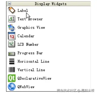 拖曳控件容器栏的滑动条,在最后的Display Widgets容器栏中找到Label标签控件,拖曳三个此控件到中间的编辑框中