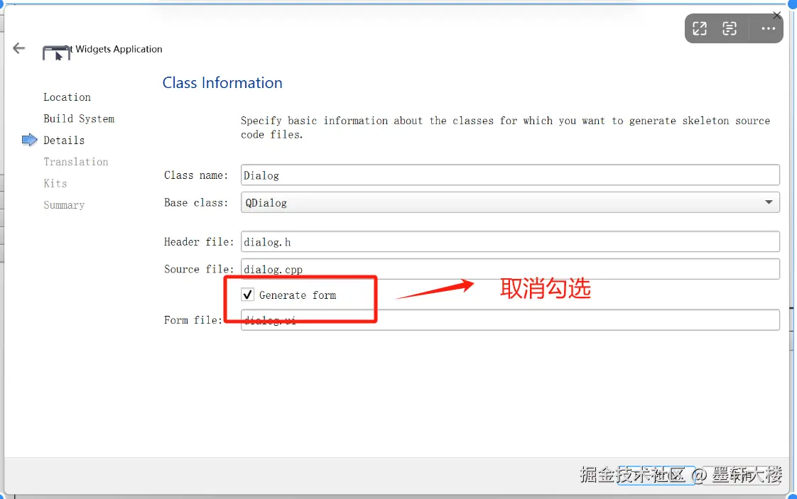 - 首先创建一个新工程。创建过程和前面基本相同,在第(5)步骤中,取消“创建界面”复选框的选中状态。