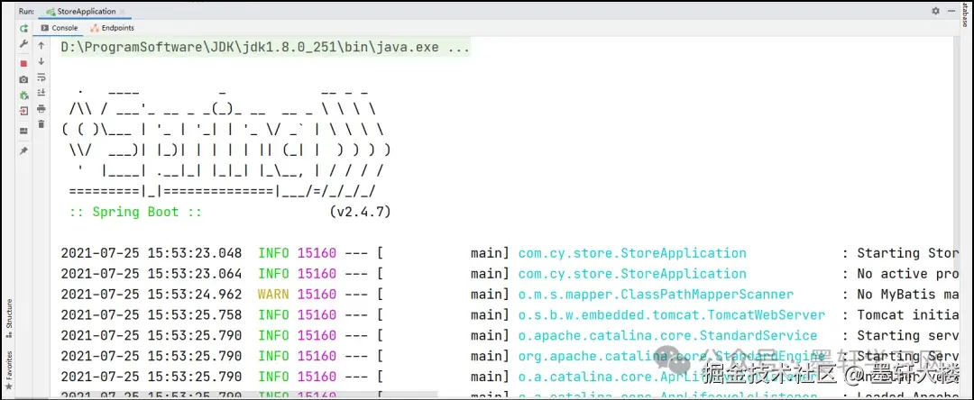 找到项目的入口类(被@SpringBootApplication注解修饰),然后运行启动类;启动过程如果控制台输出Spring图形则表示启动成功。