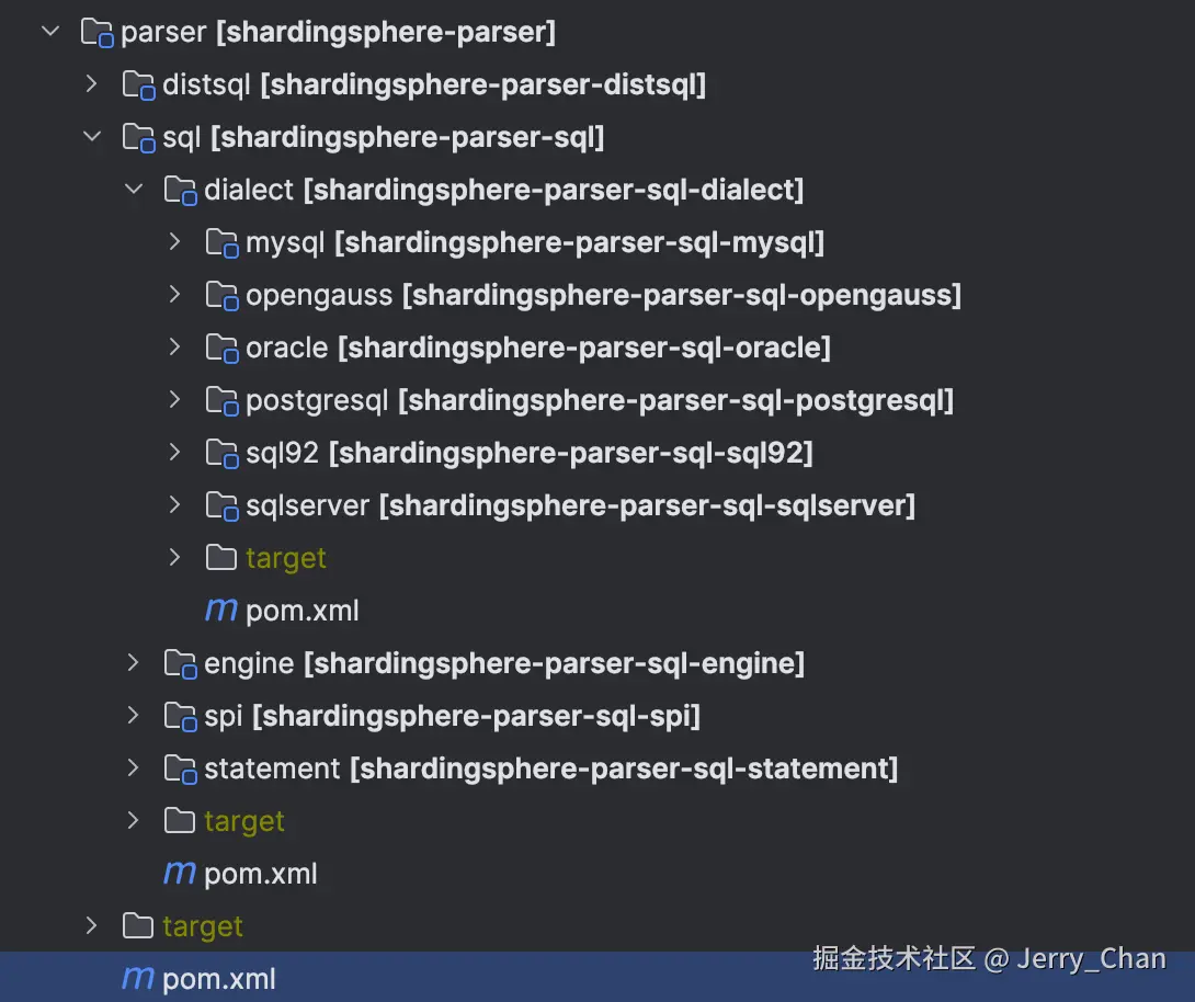 下面再简单看看 ShardingJDBC 是如何使用 Antlr4 的,具体代码在 shardingsphere-parser 这个模块。