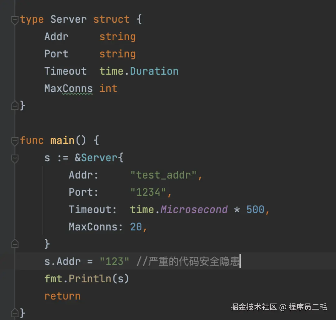 咱们引入一个新的结构体Config,把必填的参数放在server里面,非必要的参数放在Congfig里面