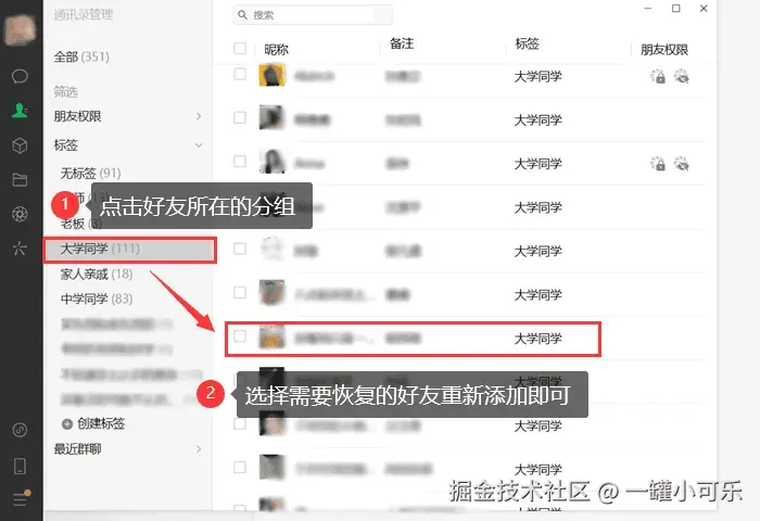 方法三:通过分组标签恢复好友