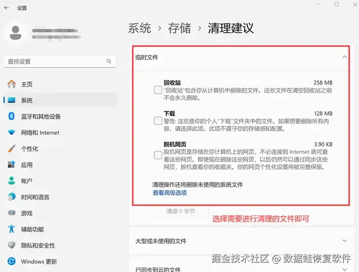 步骤3: 在里面选择需要清除的文件即可。