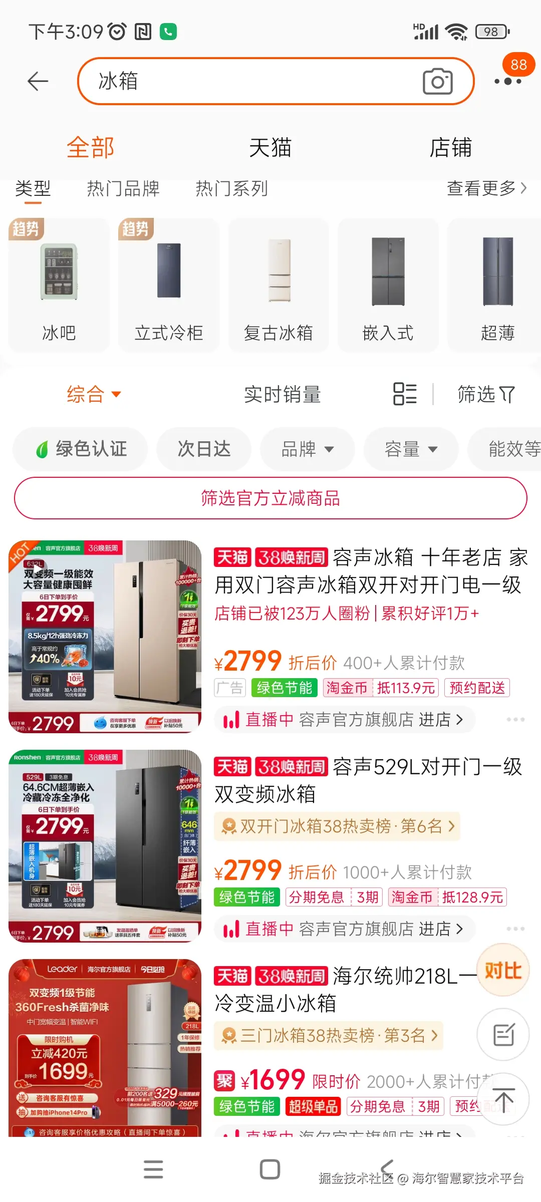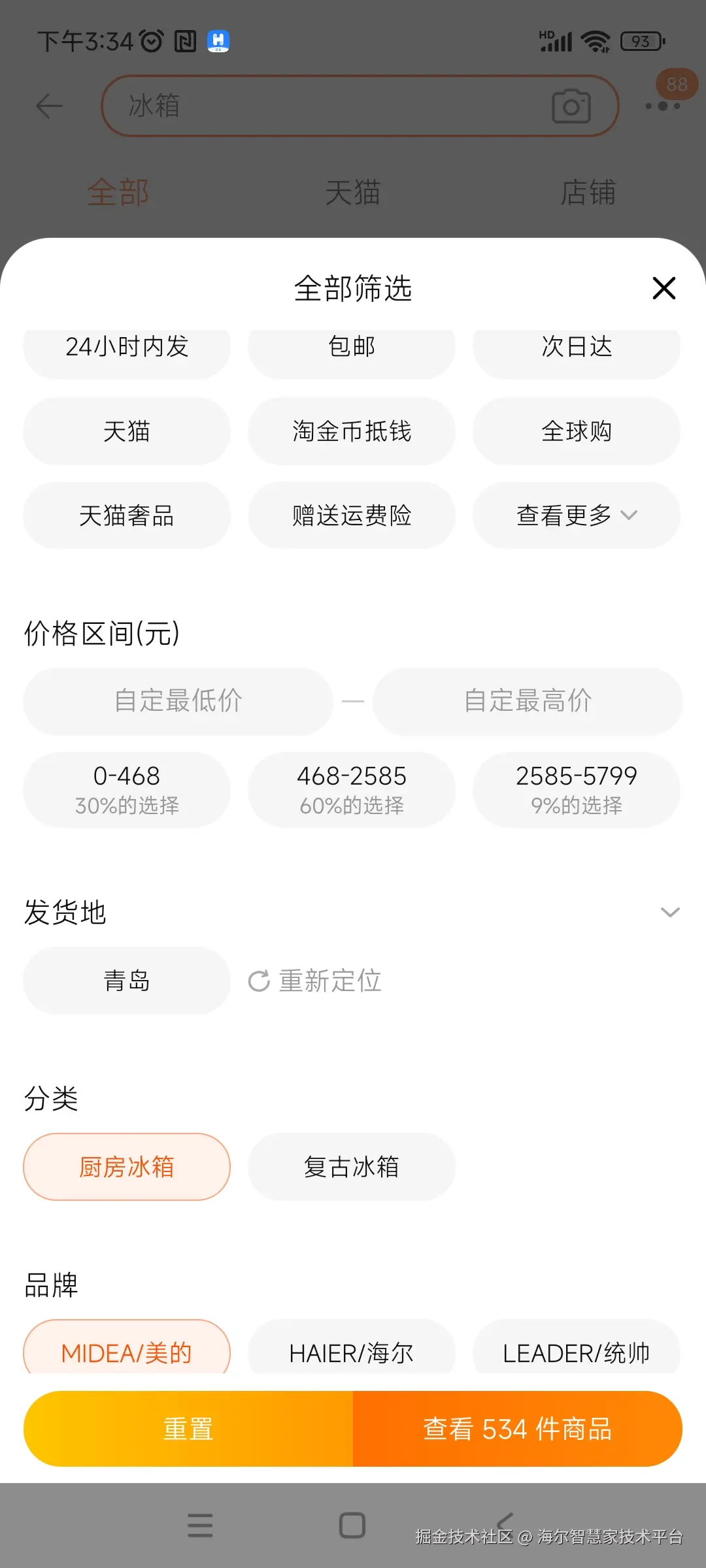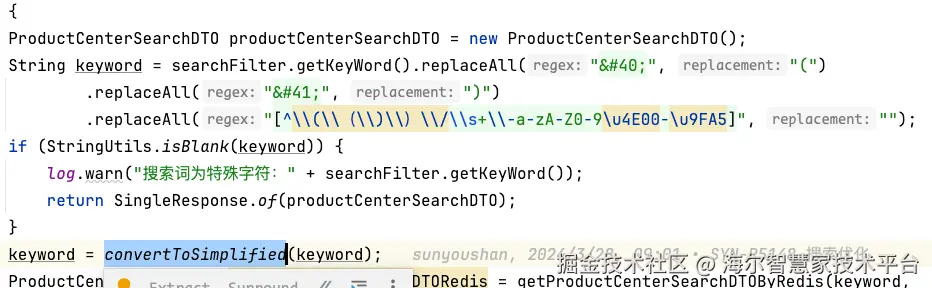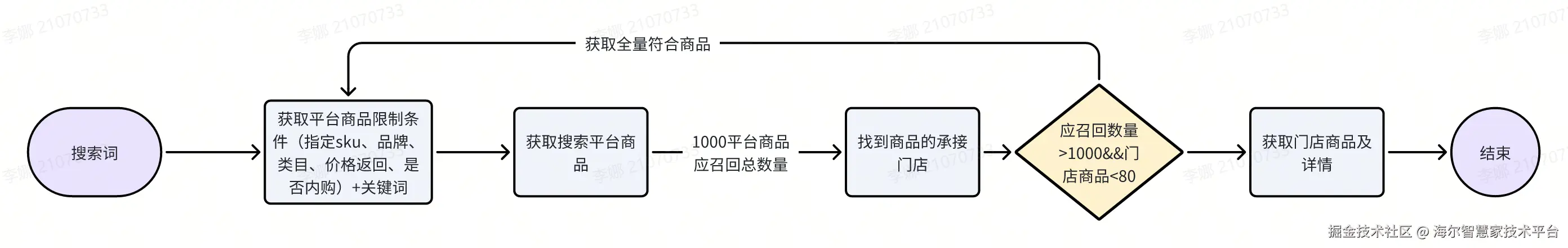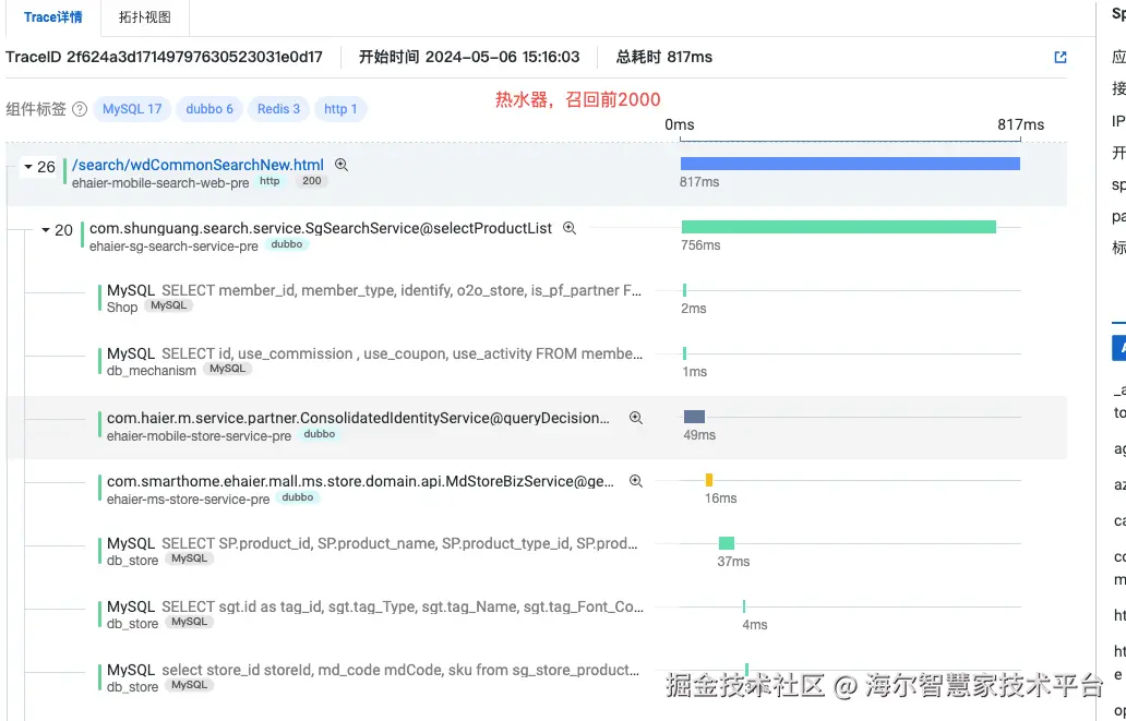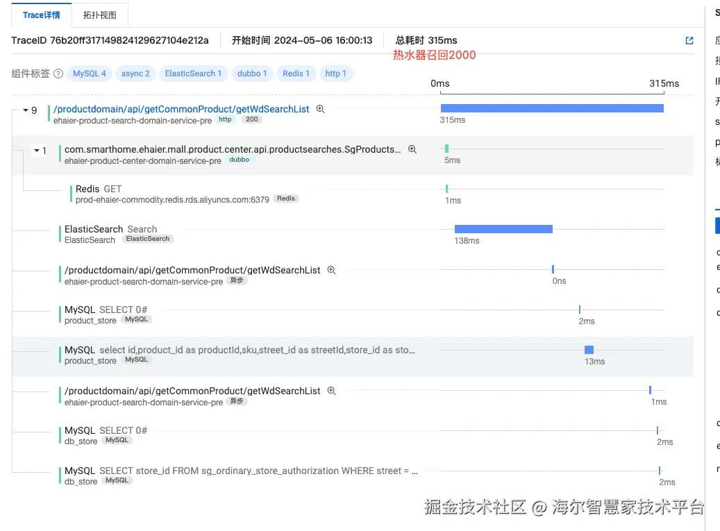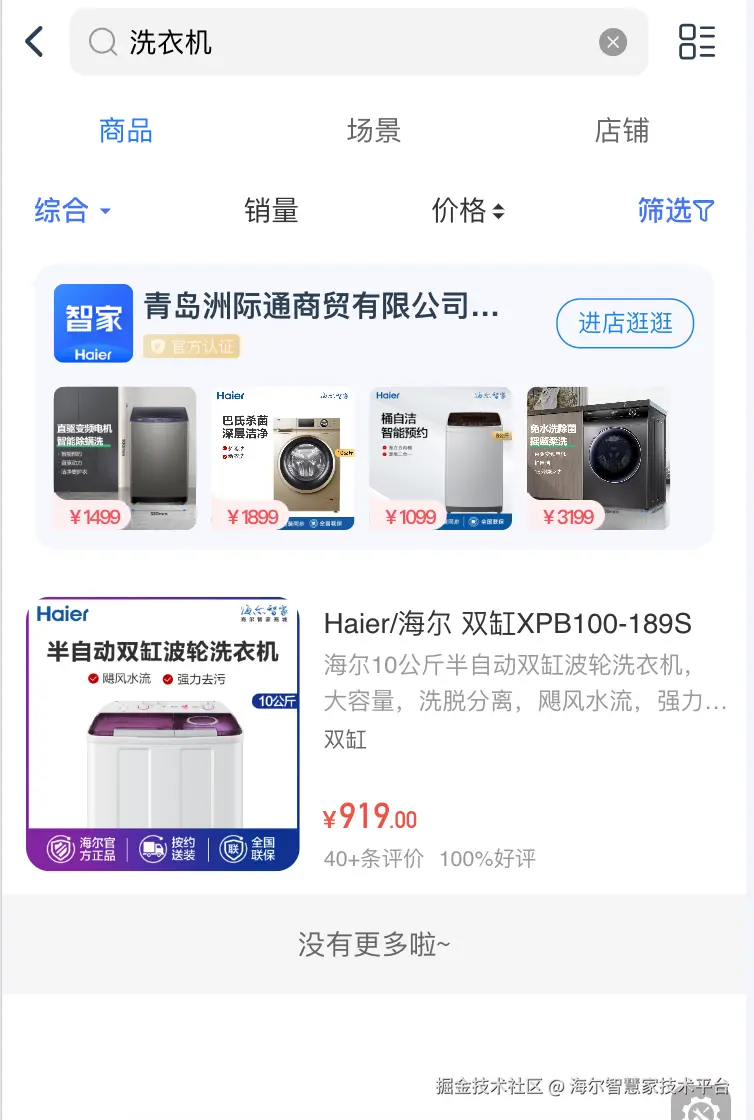 如果某个店,只上了几款冷门海尔商品,如果搜索『海尔』,依旧可能会出现搜不到的情况,原因是这个时候的过滤点在后面『找商品承接门店』。