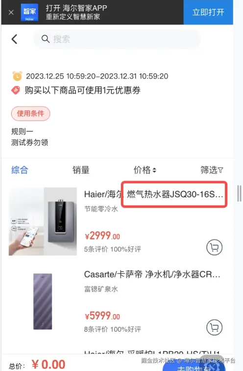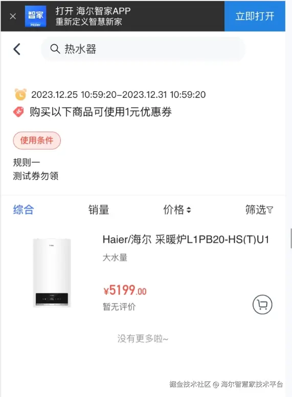 测试反馈:券适用列表页,返回热水器商品,但是搜索“热水器”时,返回结果中无此商品,建议优化