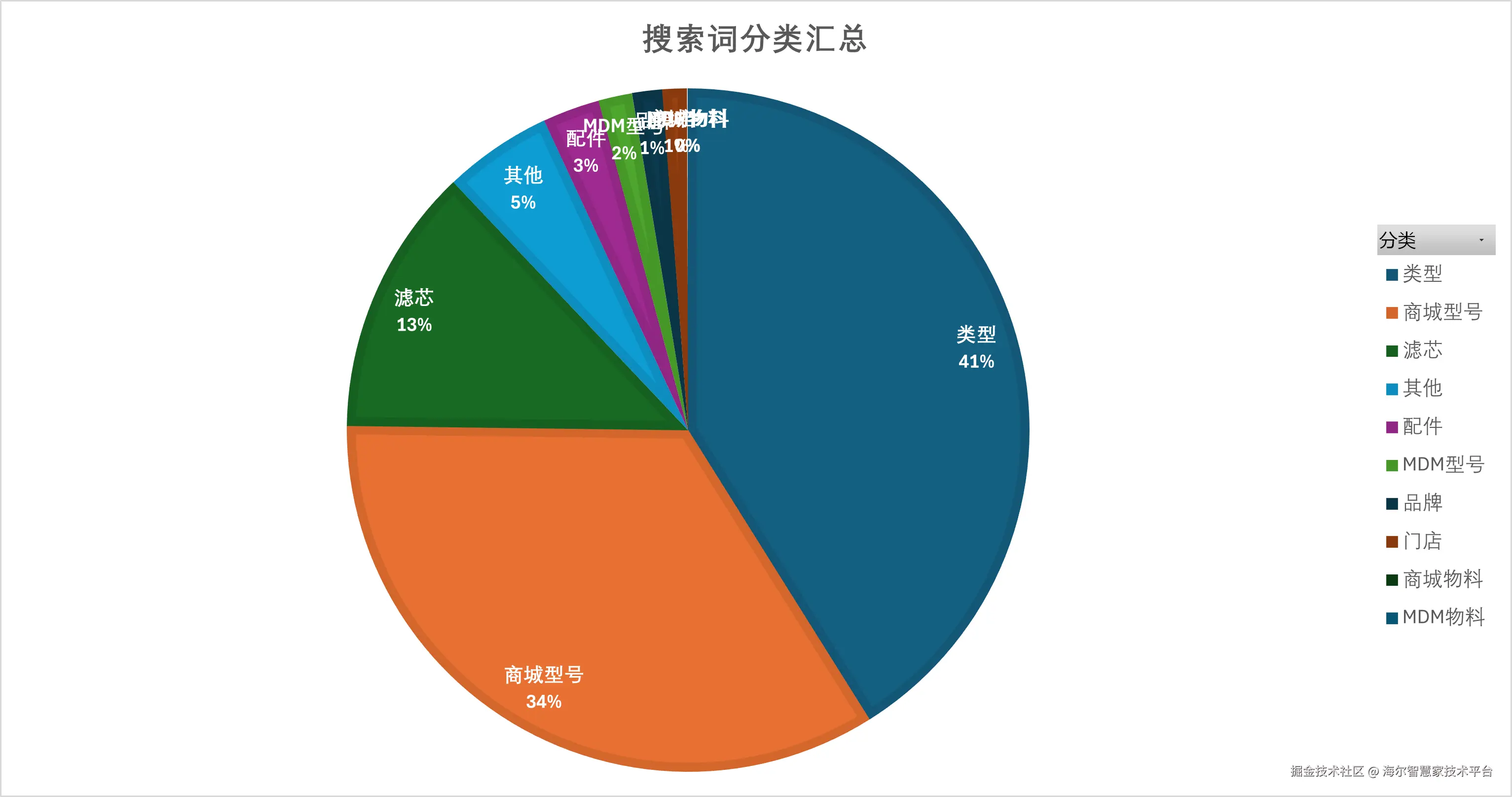 其中商品类型(滤芯)搜索占比如下: