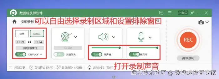 电脑录屏作为我们使用电脑时重要的工具,在寻求解决录屏为什么没有声音的方法的同时,我们也应该意识到一款专业的录屏软件才能帮我们录制出声音与画面都清晰的视频。这就不得不提及一款卓越的录屏软件——数 据 蛙录屏软件。
