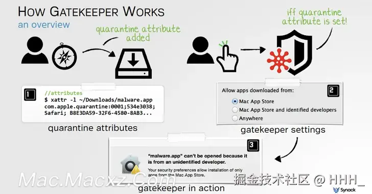 Gatekeeper 可确保 Mac 只运行 "可信" 的软件,以保护用户免受恶意软件、病毒和其他安全风险的侵害。Gatekeeper 会进行检查,确保软件来自经确认的开发商,并且不含恶意内容。在这里看得出来苹果对于安全性方面的要求是更加的严格了。