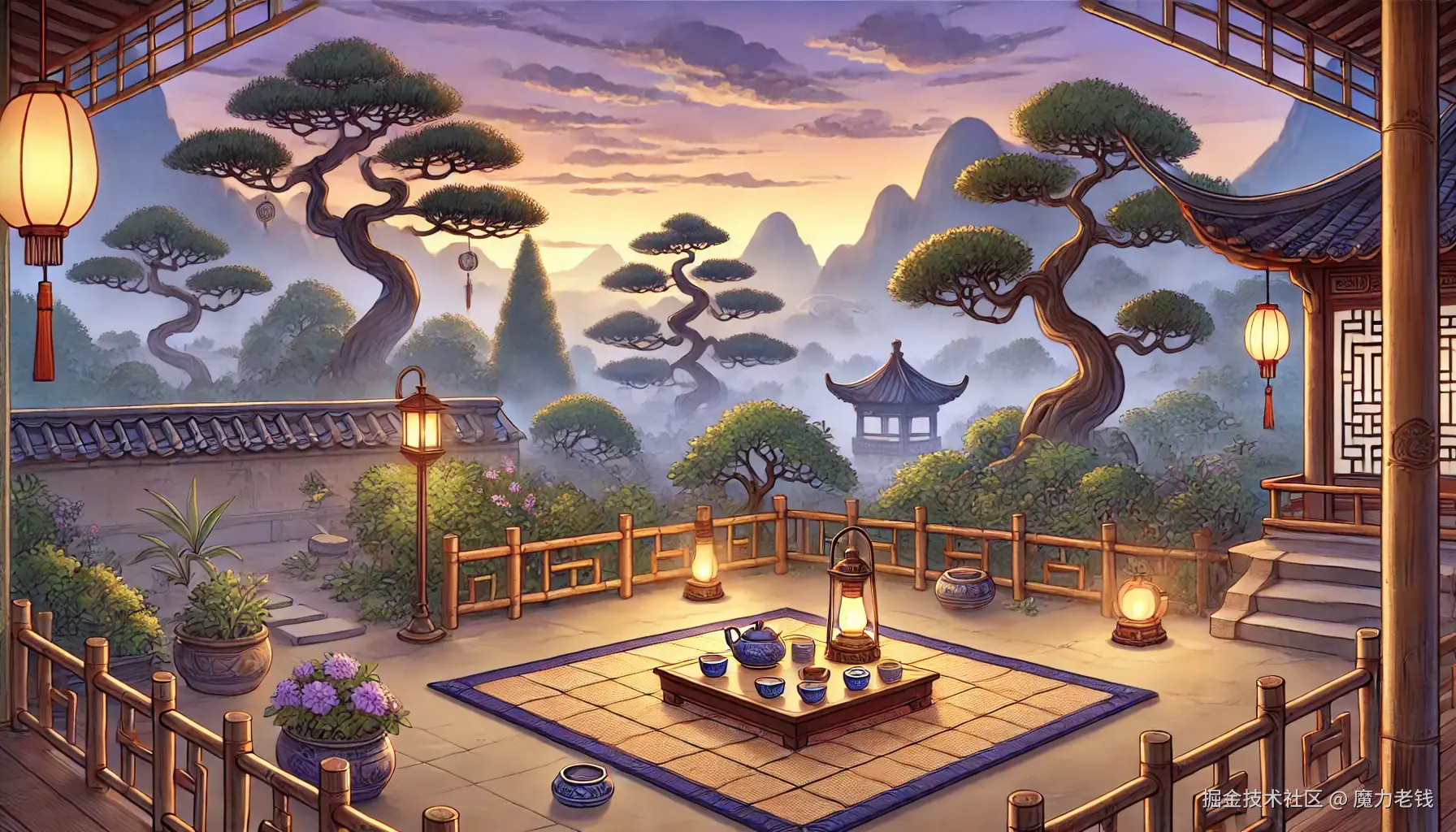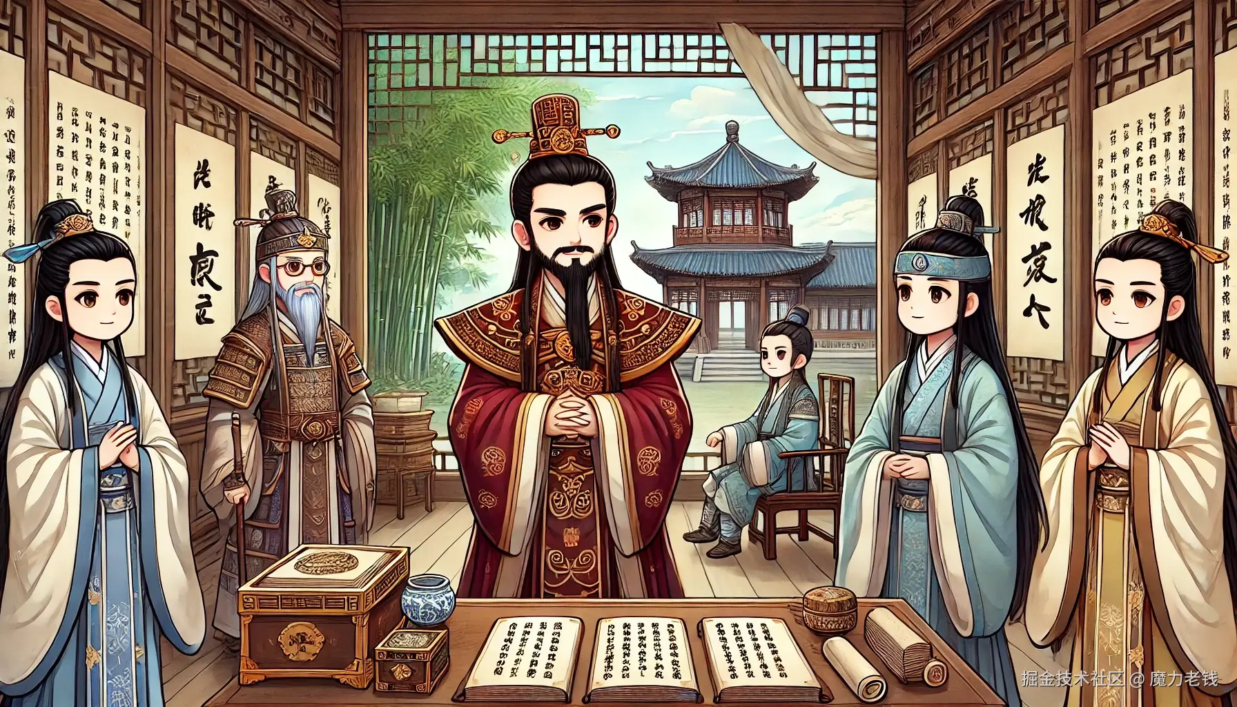 成都府外的竹林被微风吹得沙沙响,刘备和关羽两兄弟坐在院子里的凉席上,面前有一盏灯笼,柔和的灯光洒在他们的脸上。周围静悄悄的,偶尔几声夜鸟叫,给这夜晚增添了点神秘感。