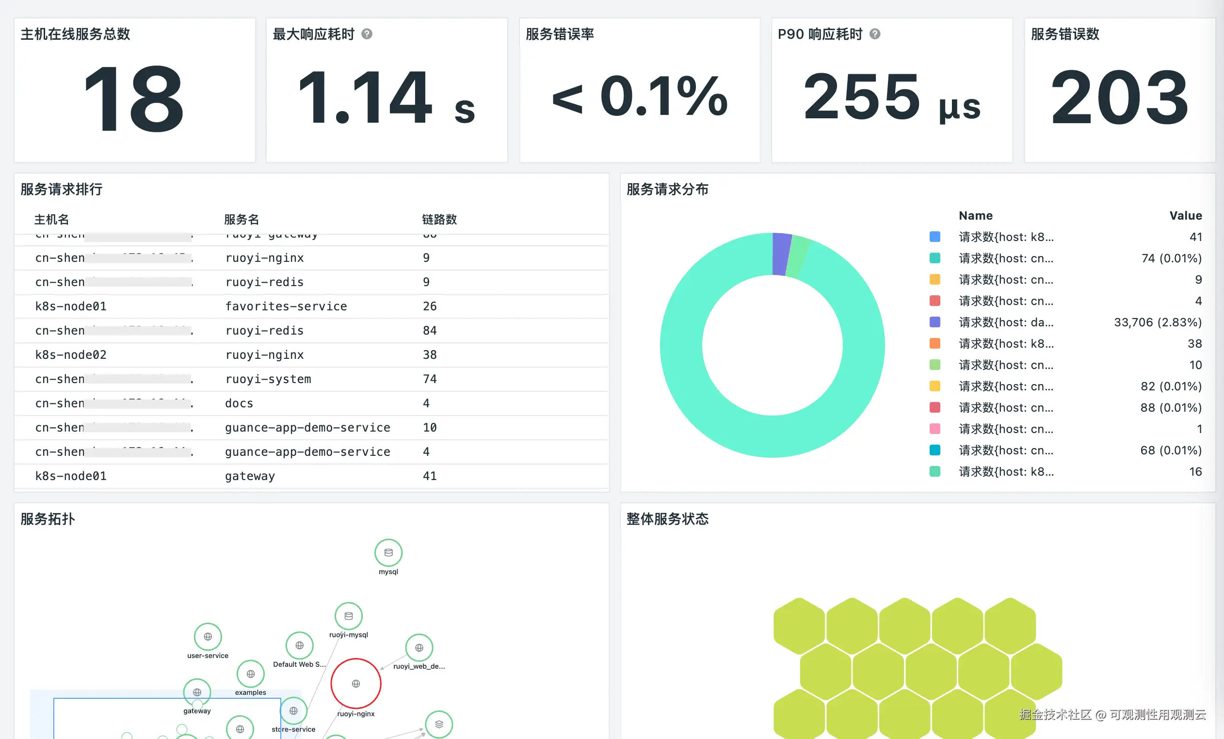 - 第一个手段是 Dashboard(大盘),并可以配置下钻分析,例如从订单号下钻到用户会话,并从会话跟踪整个订单的处理过程。