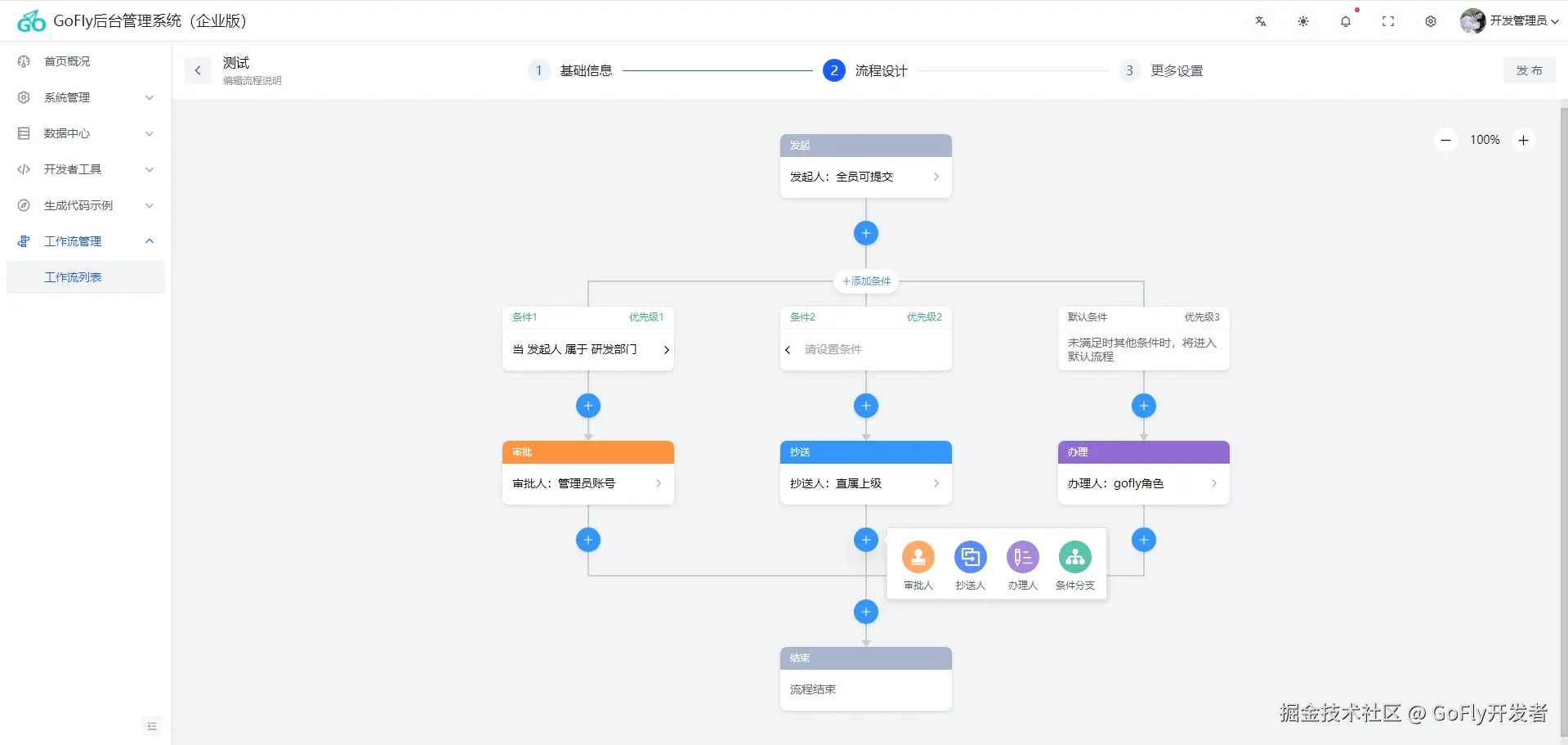 基于以上原因于是乎我们GoFly技术团队投入一个月时间,在GoFly框架上手戳一个漂亮、交互好、简单、易用的工作流组件,使得流程开发和使用变得简单。让我们开发项目提高一个档次,好的界面和使用体验是你项目交付甲方最重要因素,没有第一眼认可,你开发功能再好甲方第一印象绝对无法改变,你觉得他还会认真把你开发软件仔细看完吗?所以我们GoFly技术团队一直强调好的软件开发团队不仅只重视软件功能,更要把交互见面做好,抓住使用者的眼球,让使用你开发的软件变得一种享受,这样甲方软件才好推广。