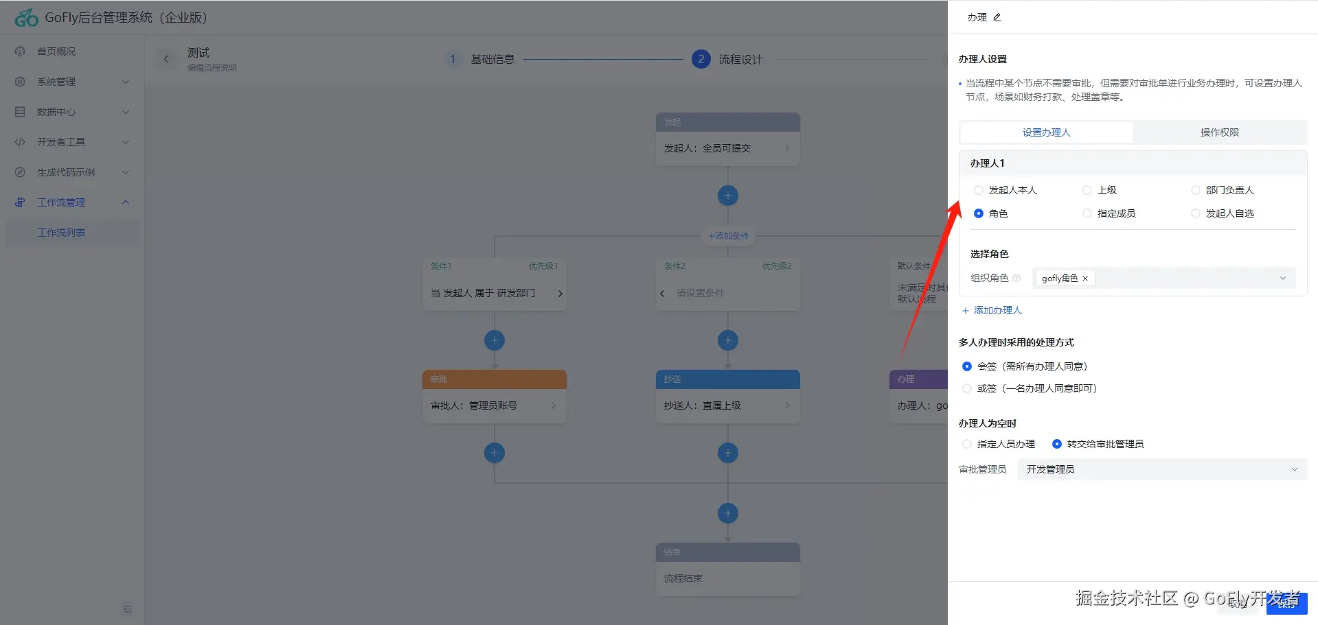 - 高级设置:多人审批时,支持会签、或签、依次审批。