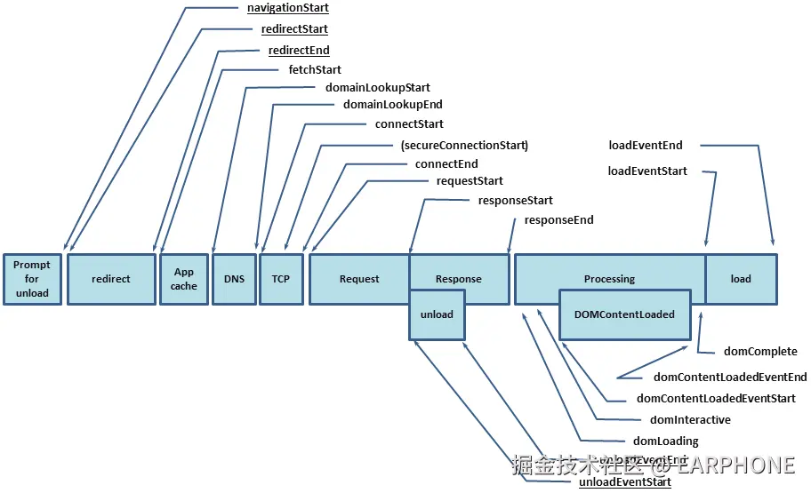 | appCache | 缓存耗时 | domainLookupStart - fetchStart | 读取缓存的时间 |