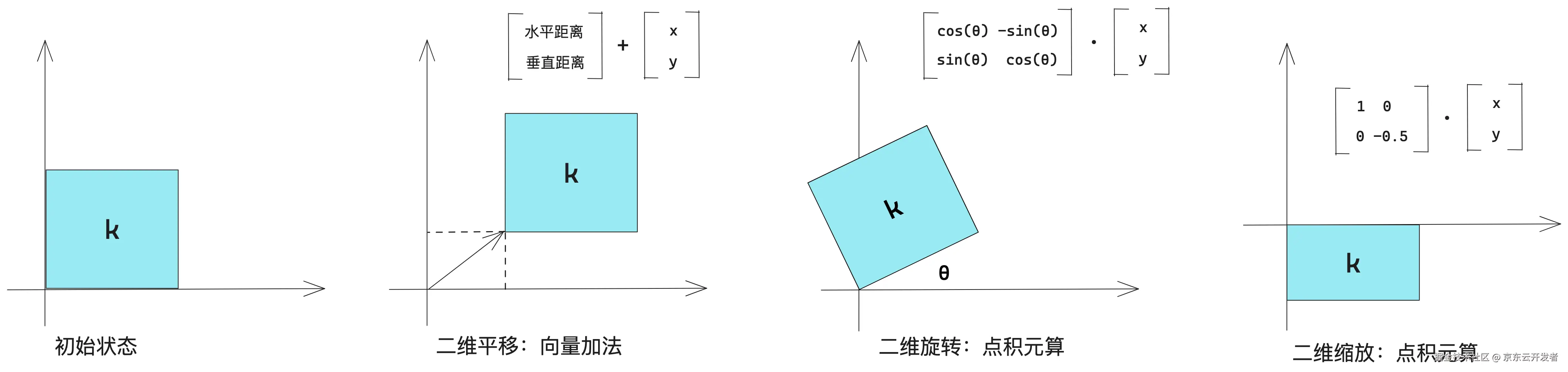 平移、旋转、缩放、倾斜等基本的几何操作都可以表示为张量运算。