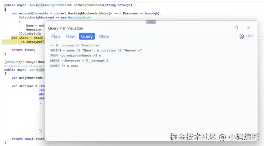 调试支持:当你在代码中设置断点并运行调试时,可以在 Watch 窗口中使用此插件来实时观察查询计划的变化。这对于理解运行时的查询行为非常有帮助。
