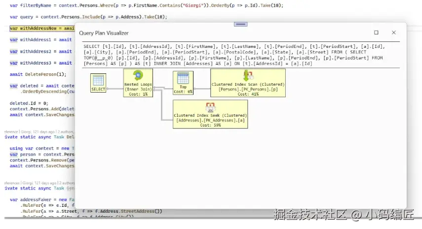 查询计划可视化:这个插件使得在 Visual Studio 中直接查看和分析 EF Core 的 LINQ 查询转换成的 SQL 查询成为可能。通过图形化界面展示查询树,开发者可以更容易地识别查询中的瓶颈或低效部分。