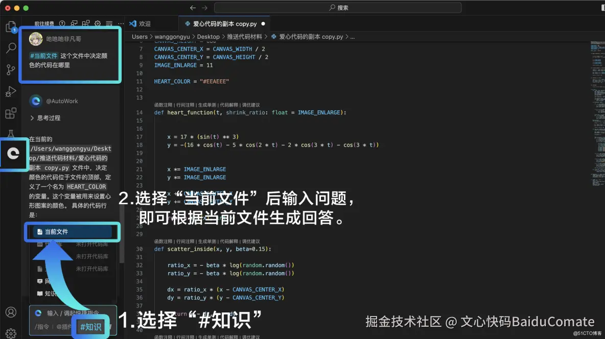 提问示例:“#当前文件 这个文件中决定颜色的代码在哪里?”好像淡淡地一问,问题就淡淡地被解决了......