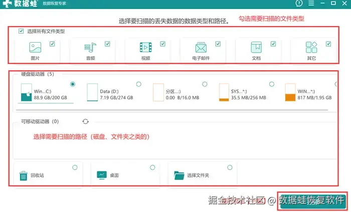 那么怎么使用数据 蛙恢复专家进行文件误删的恢复呢?具体操作说明如下:
