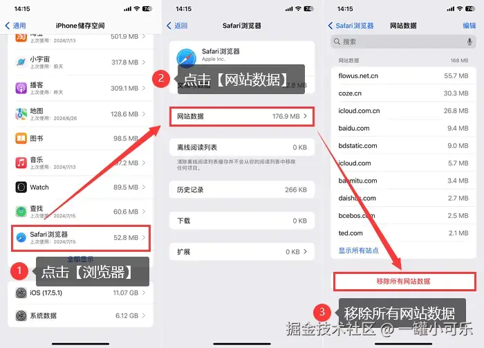 步骤2:在【Safari】页面中,找到 【清除历史记录和网站数据】 选项,点击进入并确认删除。