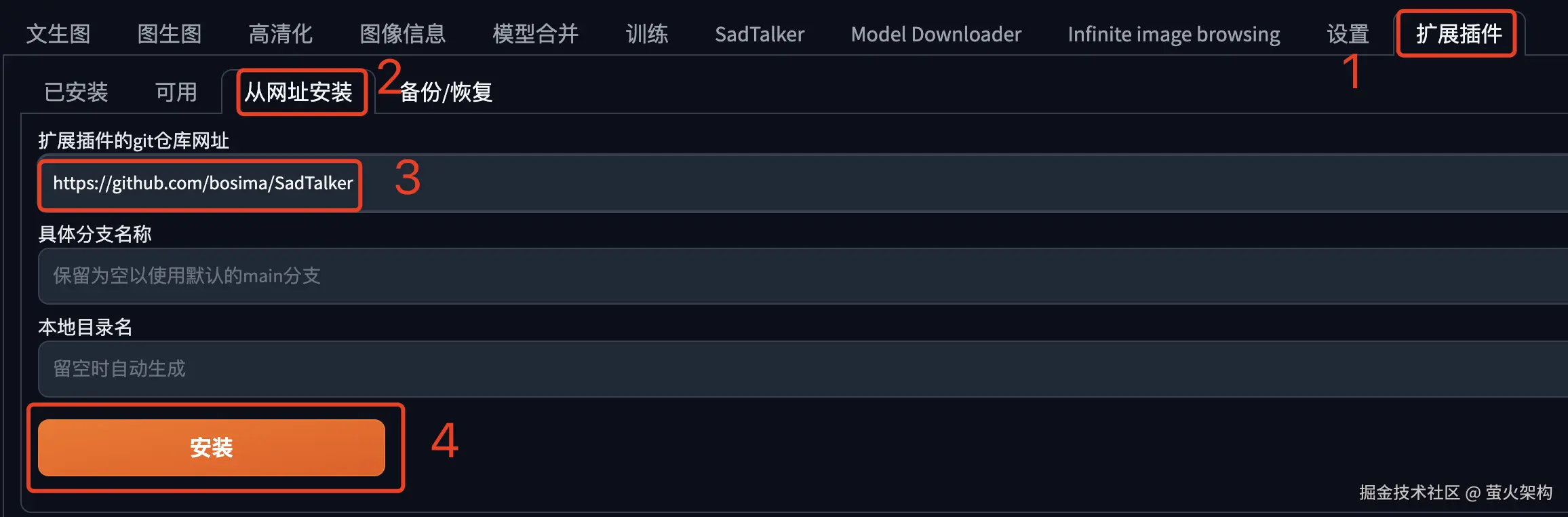 修改后的 SadTalker 我也发布在 Github上了,大家也可以直接使用下面这个链接来安装插件: