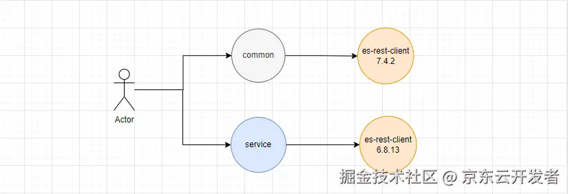 ◦实例验证: 分别在common模块和service模块中间接和直接的引入不同版本的elasticsearch-rest-client,观察项目中面对不同路径长度情况下实际加载时所使用的版本情况。