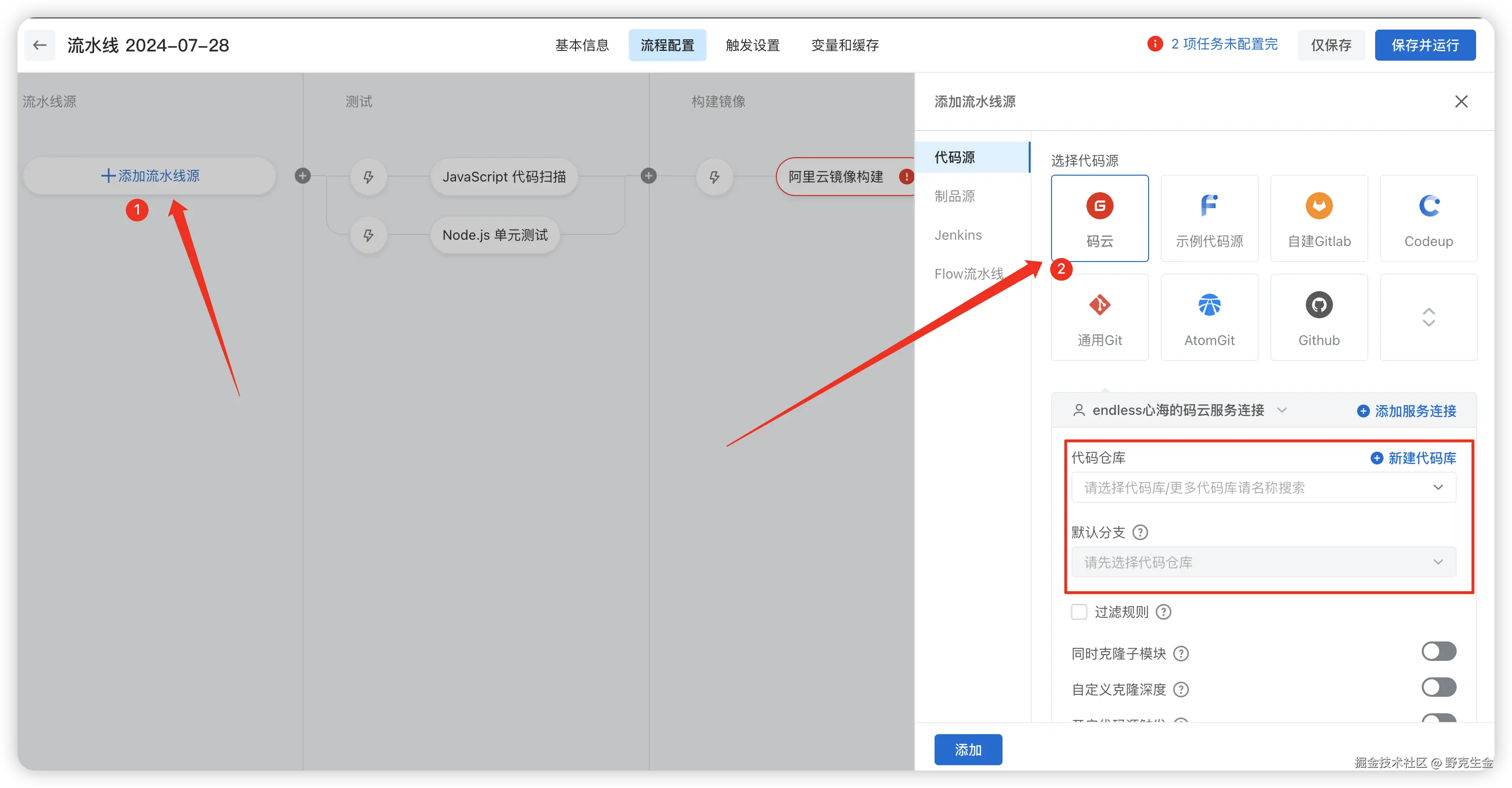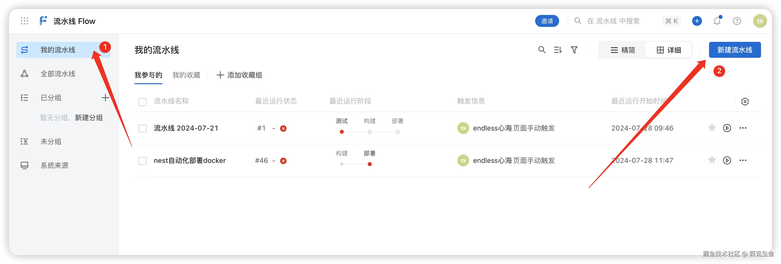 新建流水线