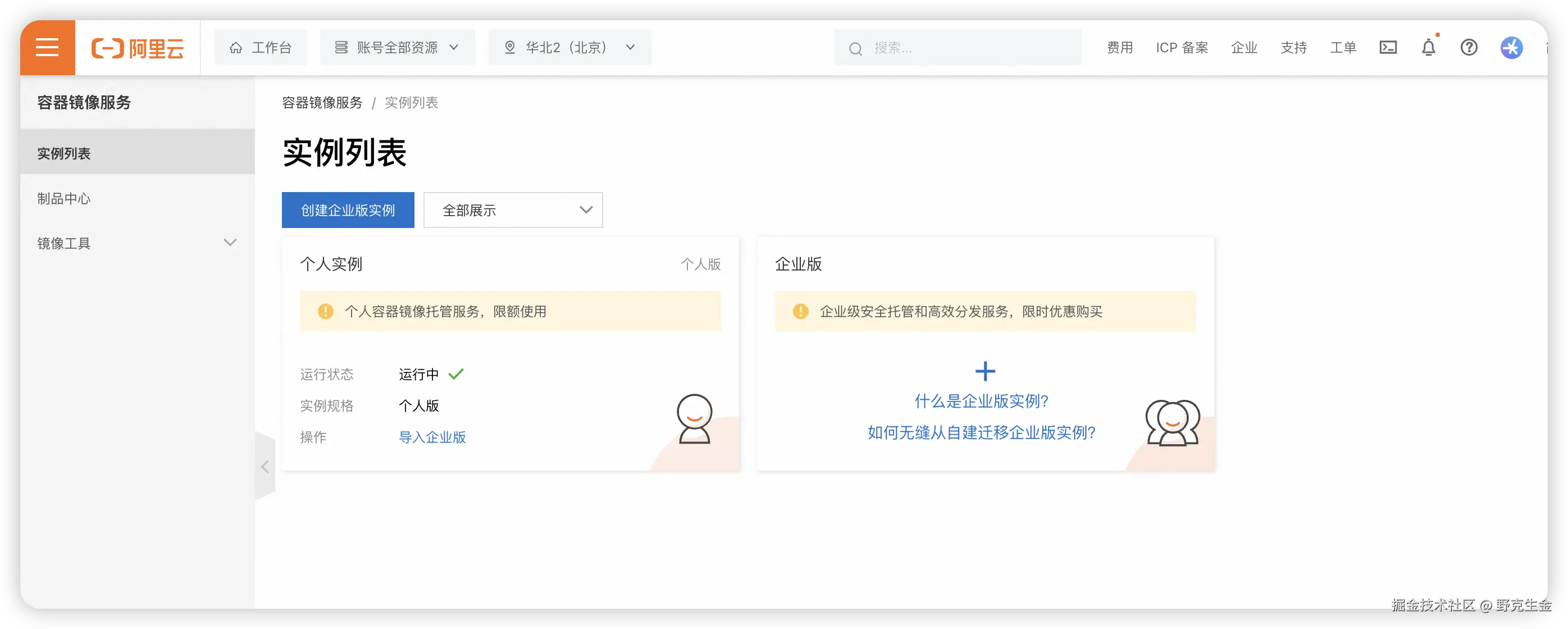 首先开通容器镜像服务(这是免费的)