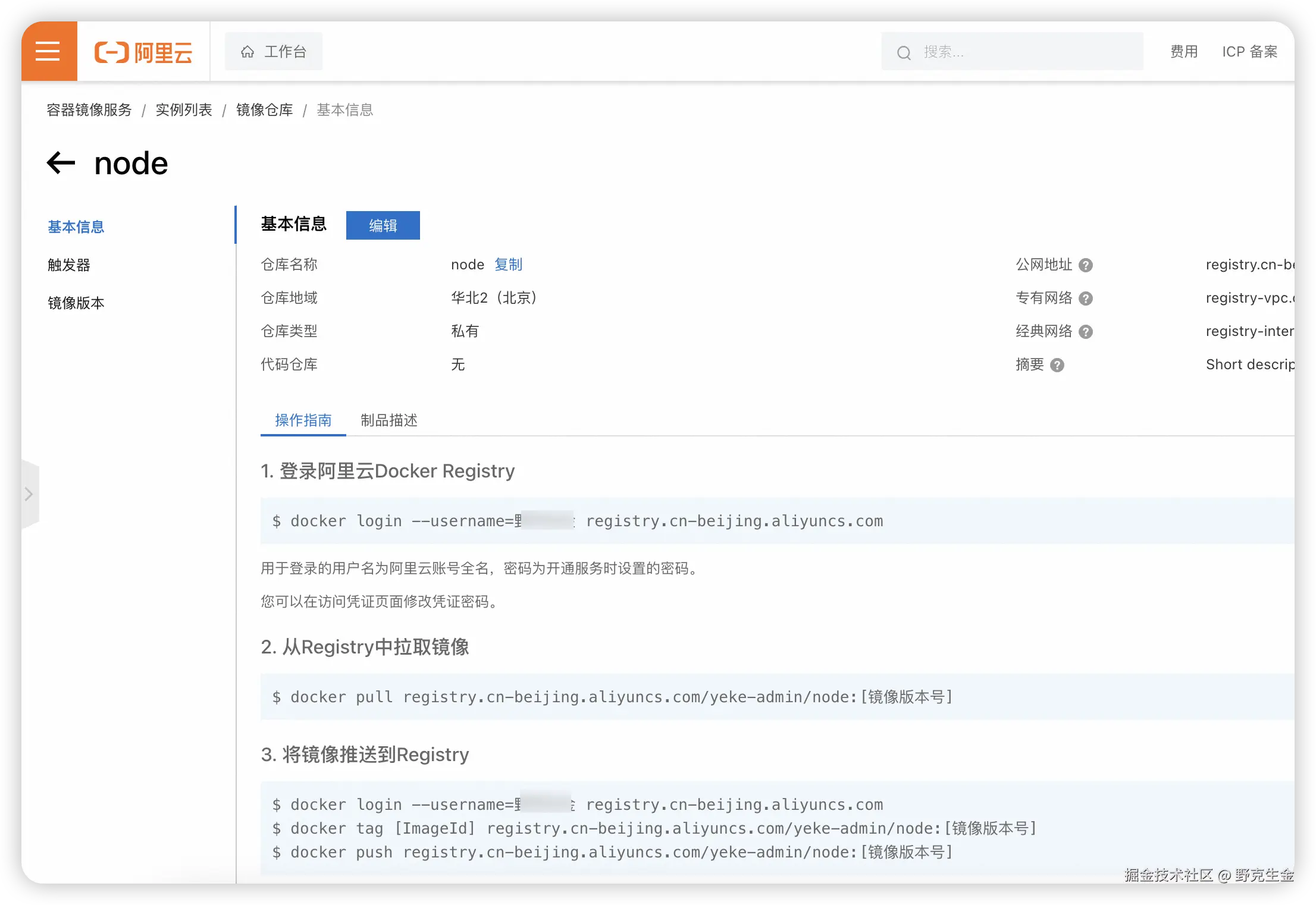 就如镜像仓库基本信息中显示的一样,按照提示操作就好