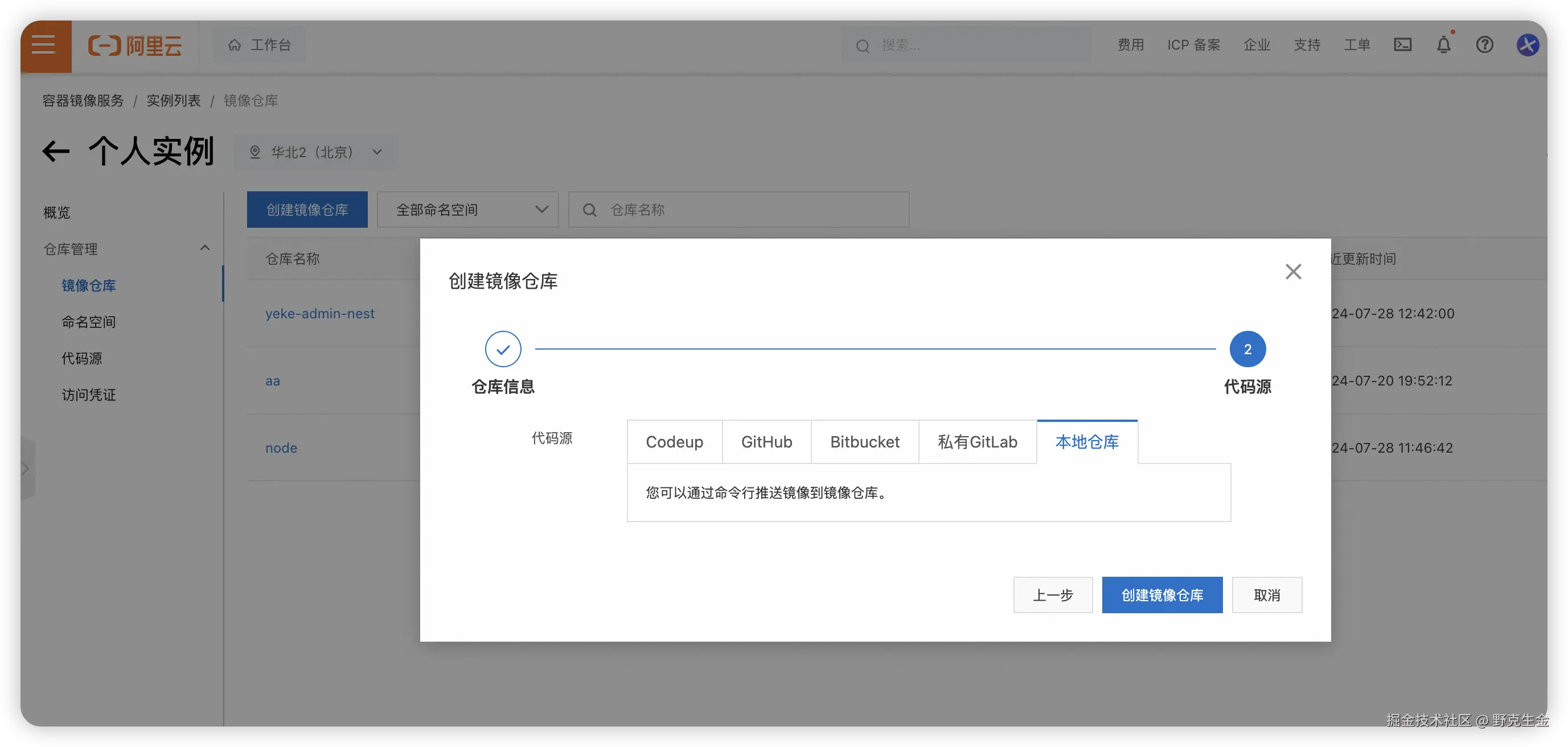 删除完后我们点击阿里云镜像构建: