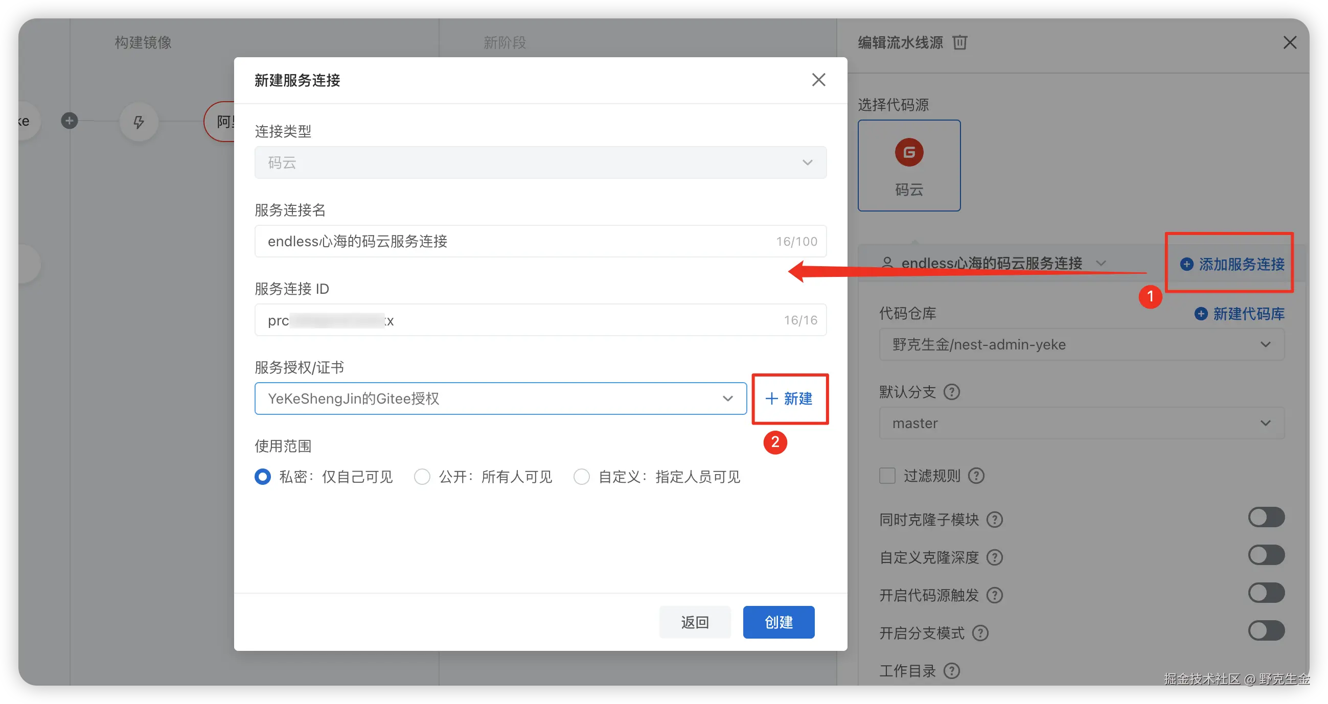 需要服务授权,点击新建,会跳转到仓库平台进行授权,如: