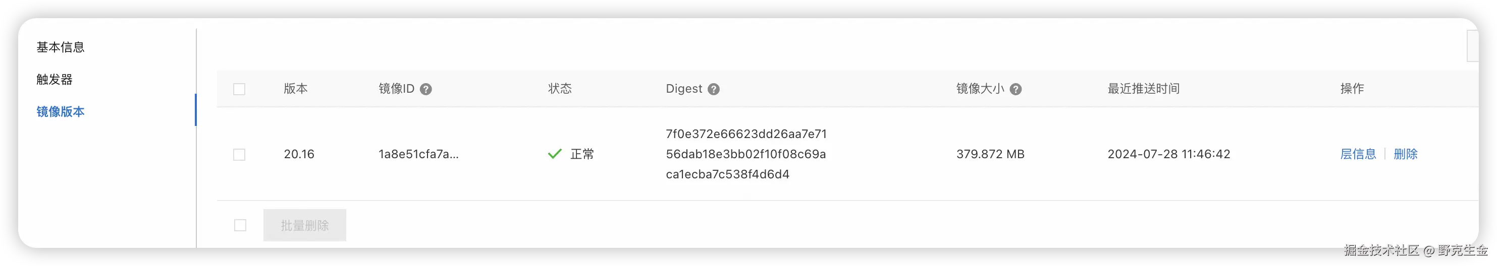 推送成功后在刚刚创建的仓库中就会有记录了,这个就是你推送的镜像