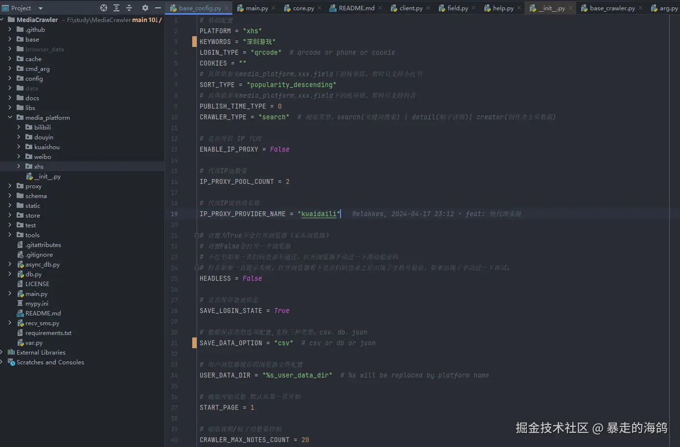 MediaCrawler的数据存储模块经过精心封装,简化了大量数据的存储过程。源代码完全开放,便于深入研究和定制,可以在config/base_config.py进行配置。