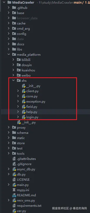 MediaCrawler提供了3种登录小红书的方式:QRCode、手机号、Cookie,登录相关代码都在media_platform/xhs/login.py文件中。