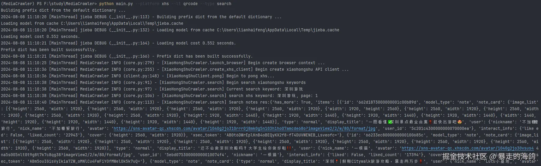 我们扫码登录后,MediaCrawler将通过无头浏览器技术识别并保存您的身份信息。这样一来,我们就可以在后续的会话中,以该身份为基础,安全地抓取所需的数据(我胆小,我选择用小号)。