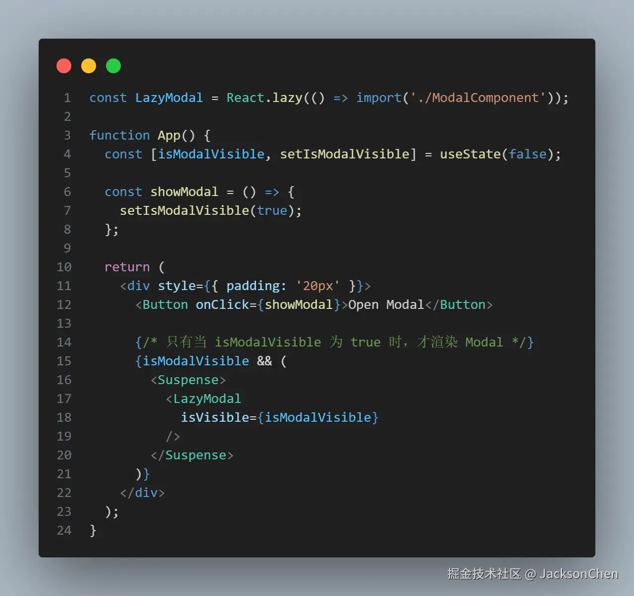 对于一些不常用或者不需要直接加载的组件我们也可以采用动态导入,比如弹出框。