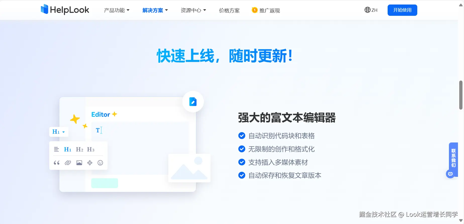 在这里推荐您使用HelpLook这款SaaS软件,无需下载,开箱即用,不仅有强大的编辑器,还支持多人在线协作。