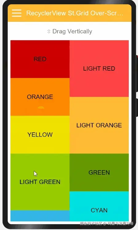类似iOS风格的边缘滚动效果视图。 支持下列视图:RecyclerView, ListView, GridView, ViewPager, ScrollView, HorizontalScrollView, Any View - Text, Image...