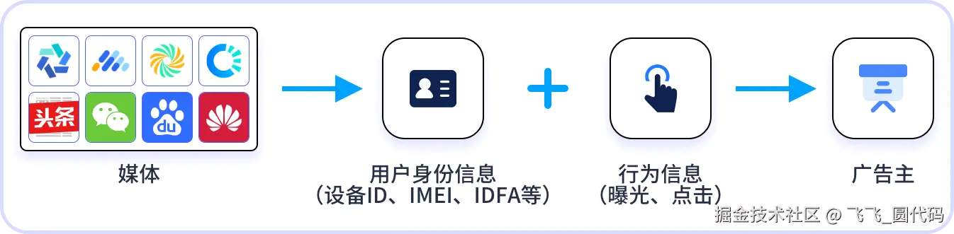 通常流程是:用户在访问广告后,广告平台方会上传设备ID、IDFA等身份信息,以及曝光、点击等信息到服务端,等到用户安装成功App后,广告主再把App内获取到用户身份信息和广告平台回传的数据进行匹配,就能得到完整的归因链条了。